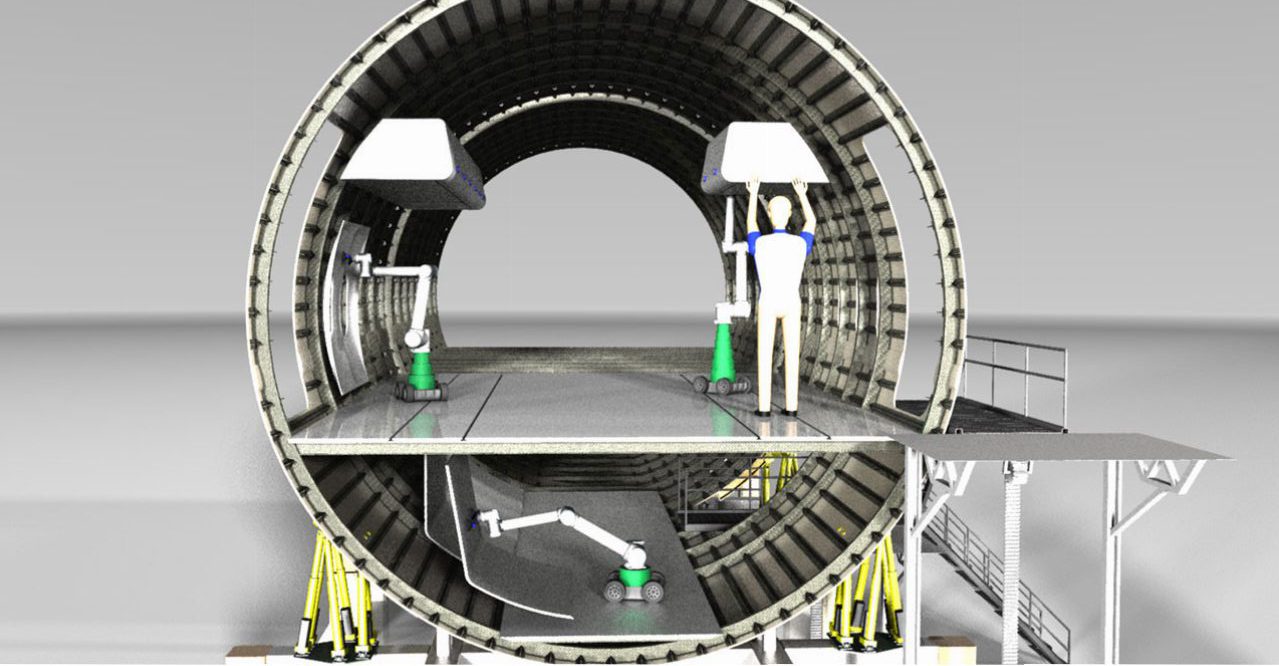 - The automation of logistics processes, delivery of aircraft parts (e.g. to the assembly stations), coexistence of human and mobile robots during installation, and fully automated processes for part, system, cabin, and cargo assembly.